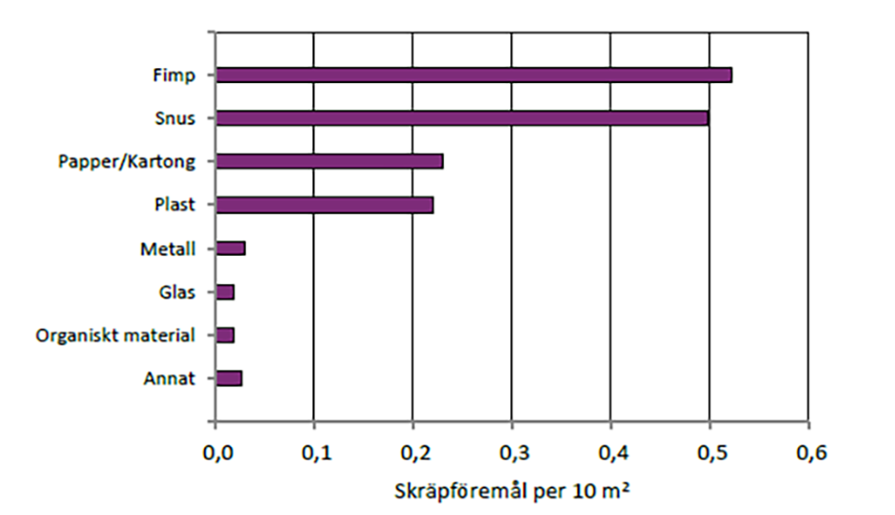 Nedskräpningen 2025 fortsätter nedåt. Fimpar och snus sticker fortfarande ut.