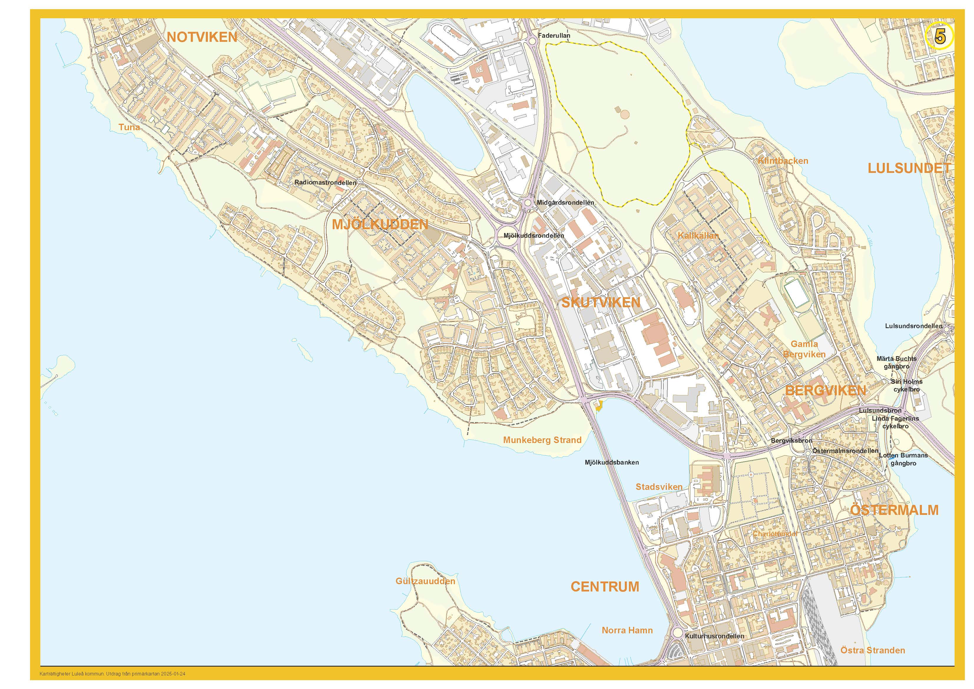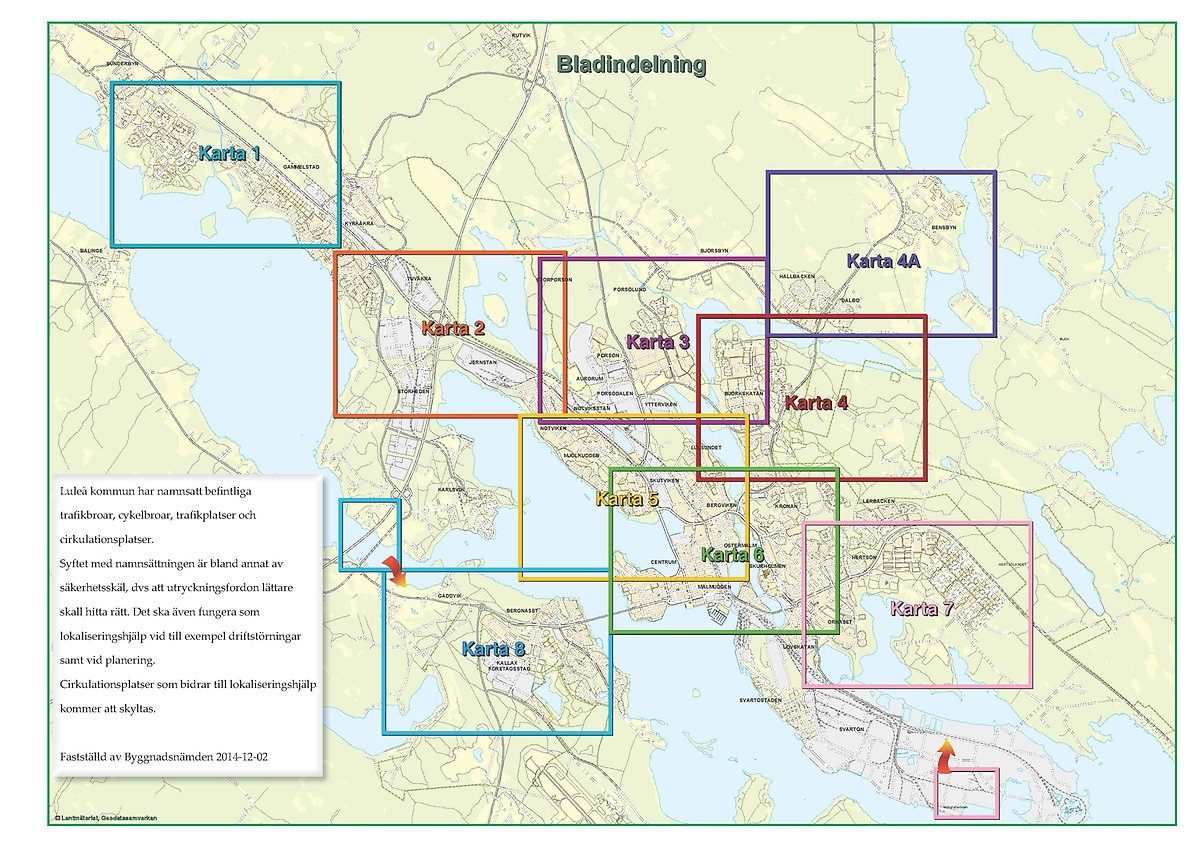 Luleå kommun har beslutat att ge trafikbroar, cykelbroar och cirkulationsplatser (rondeller) namn för att förenkla trafikinformationen vid utryckningslarm.
