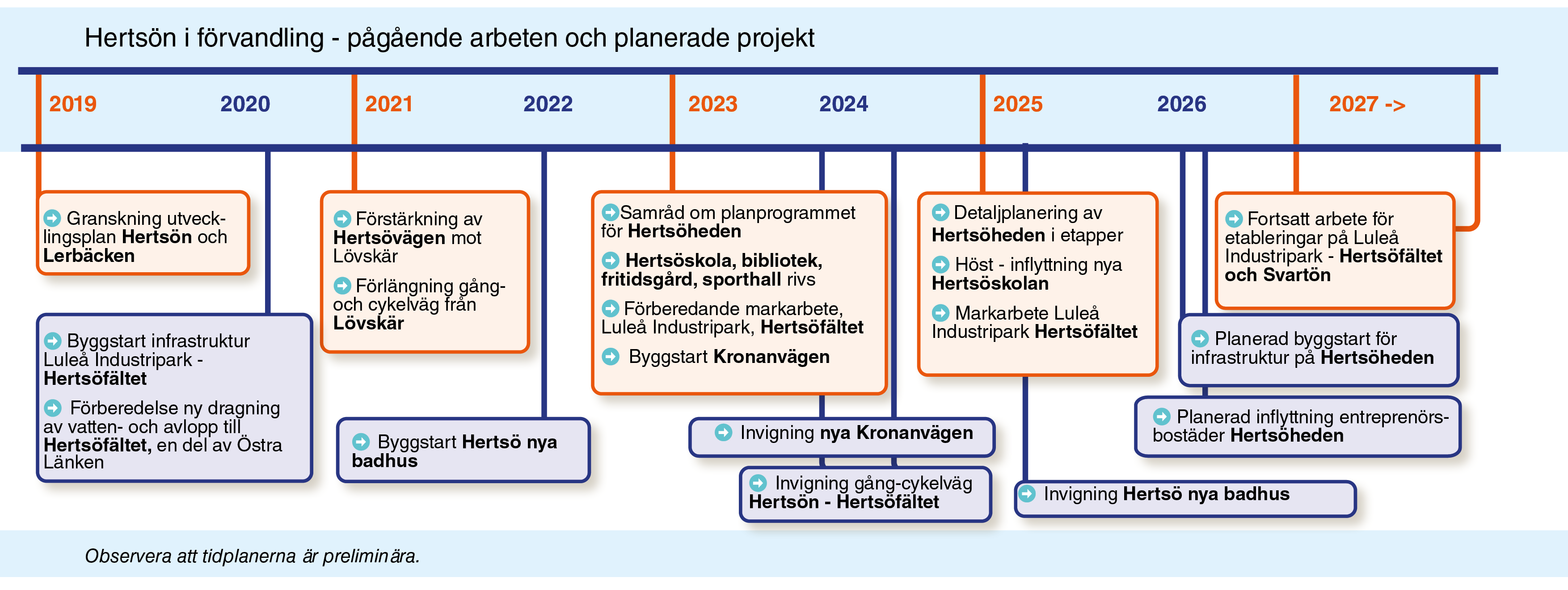 Förstora bildenTidslinje för olika projekt och arbeten på Hertsön.