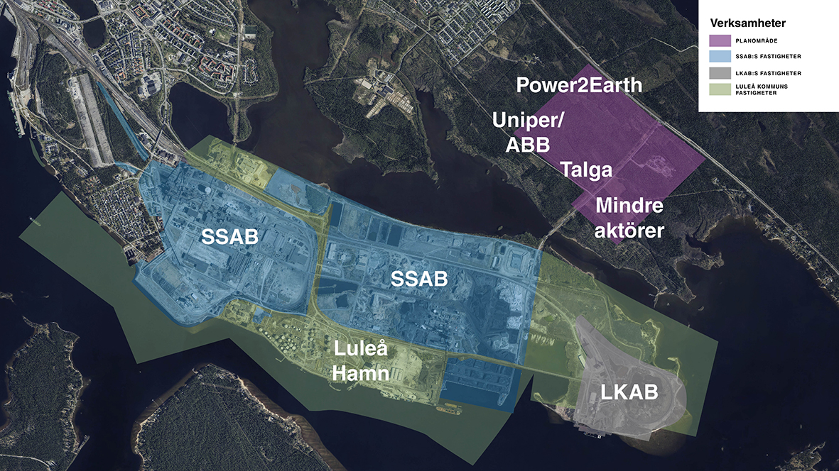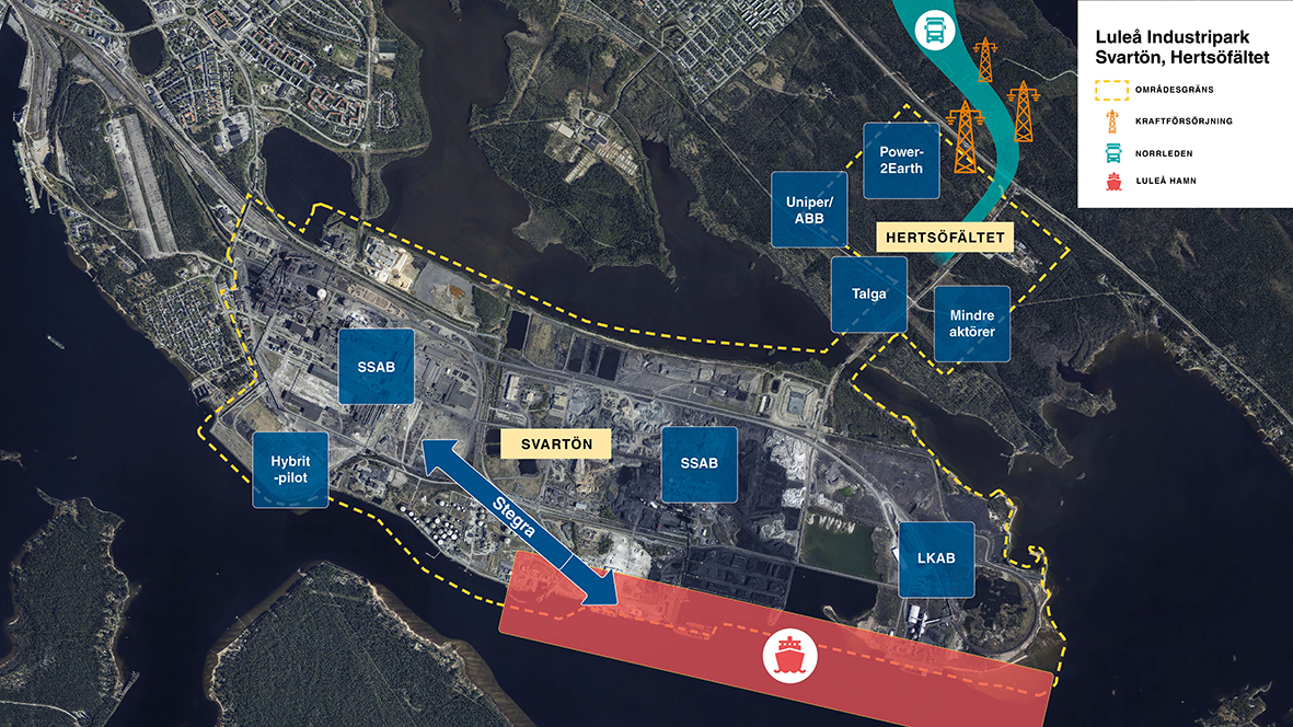 Pressbild. Översikt Luleå industripark, Svartön och Hertsöfältet.
