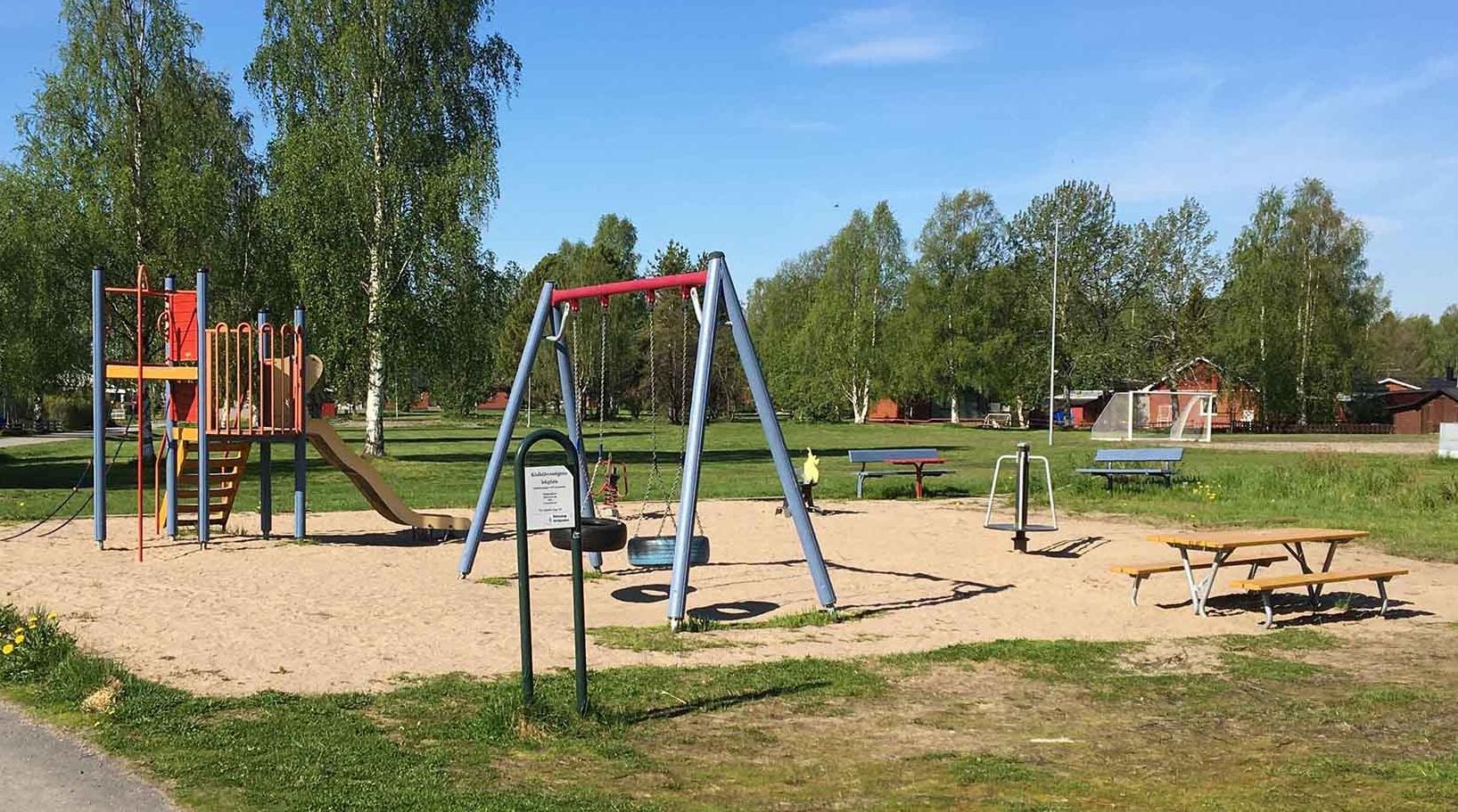 Lekplatsen har rustats upp och har lek- och klättertorn, rutschkana, linbana och gungor. Bästa vägen till lekplatsen är via Övägen.