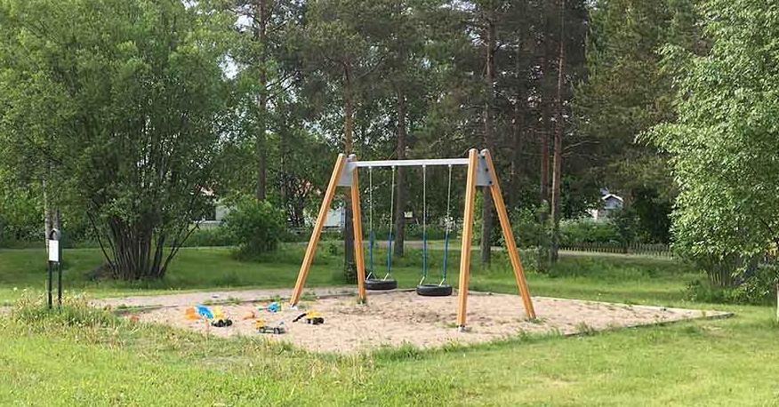 Lekplatsen ligger på en liten grönyta mellan villakvarter på Hertsön.